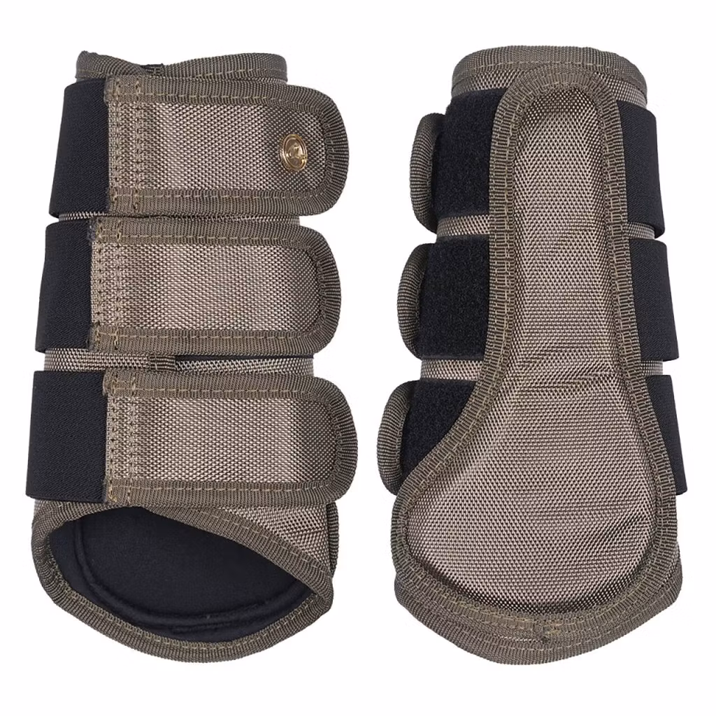 Material utvändigt: 100% polyester Material inuti: neopren Flexibla benskydd med foder som andas. Kan användas för både fram- och bakben. Med luftflödesneopren på insidan för att skydda benen. Med elastiska fästen för bästa komfort. Maskintvättbara i 30 grader. Stäng fästena och tvätta skydden i en tvättpåse.