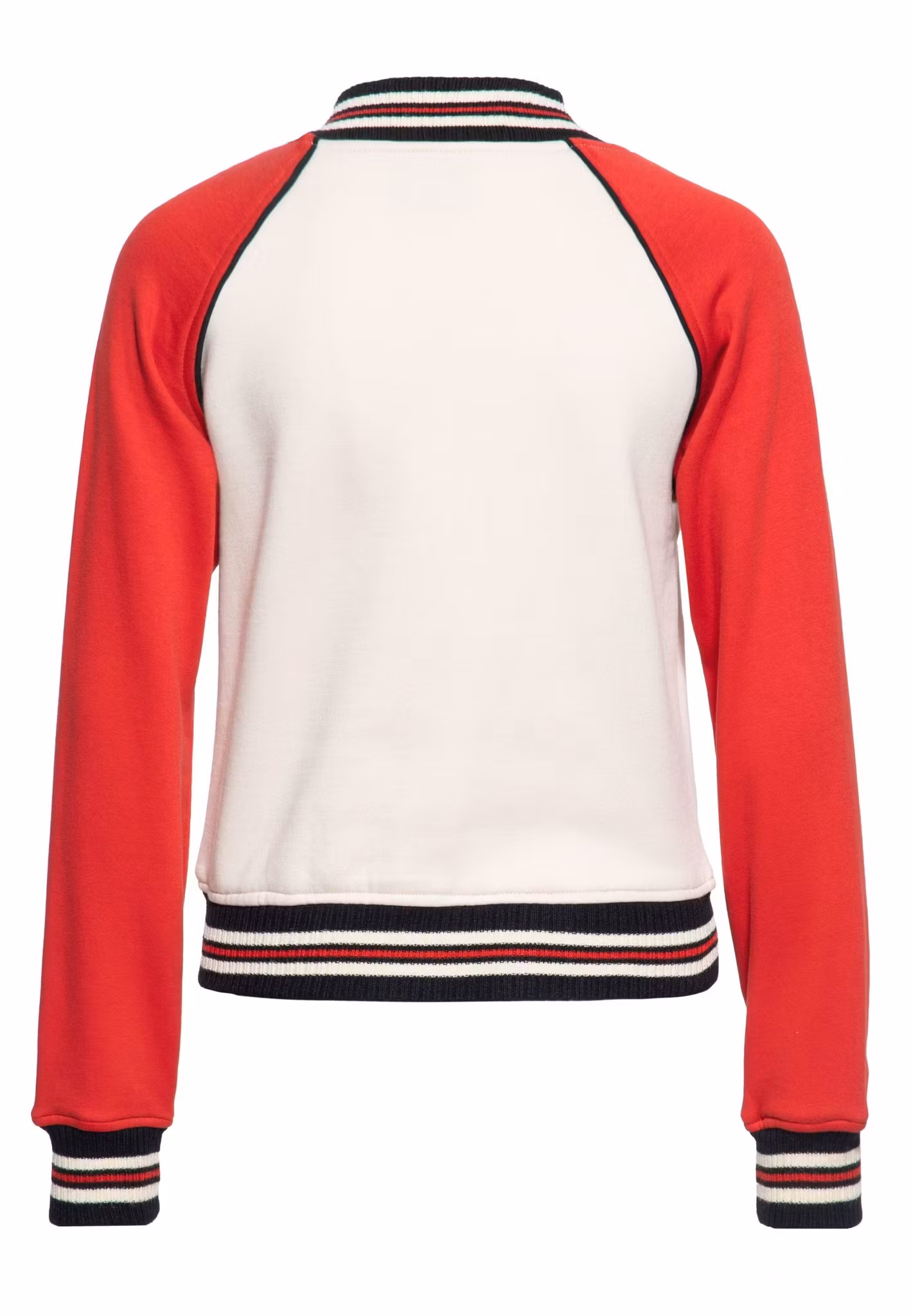 Jacka i collegemodell med raglanärm.75% bomull och 25% polyester.Tvättråd 30 grader fintvätt, sträck i vått tillstånd, torkas hängande.
