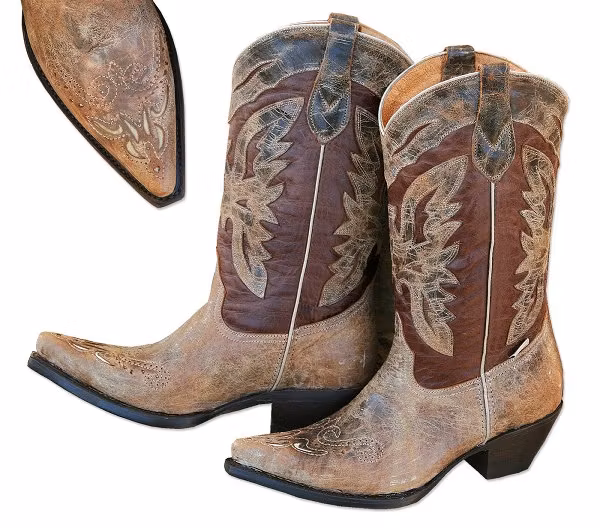 Westernboots with embroidery and intricate appliqués.The insole, lining, heal, and the usually embellished outer soles are made of high-quality cowhide. Made by