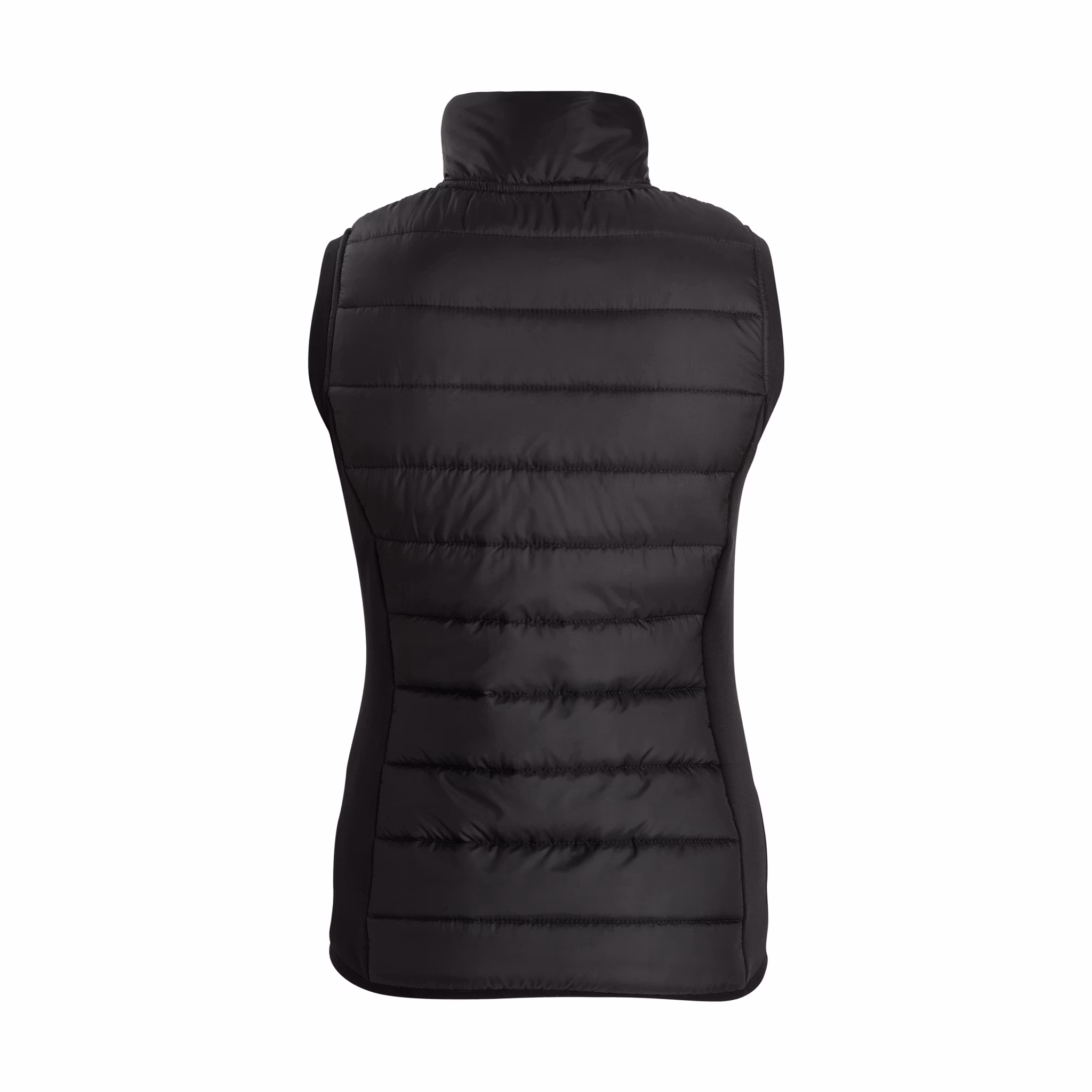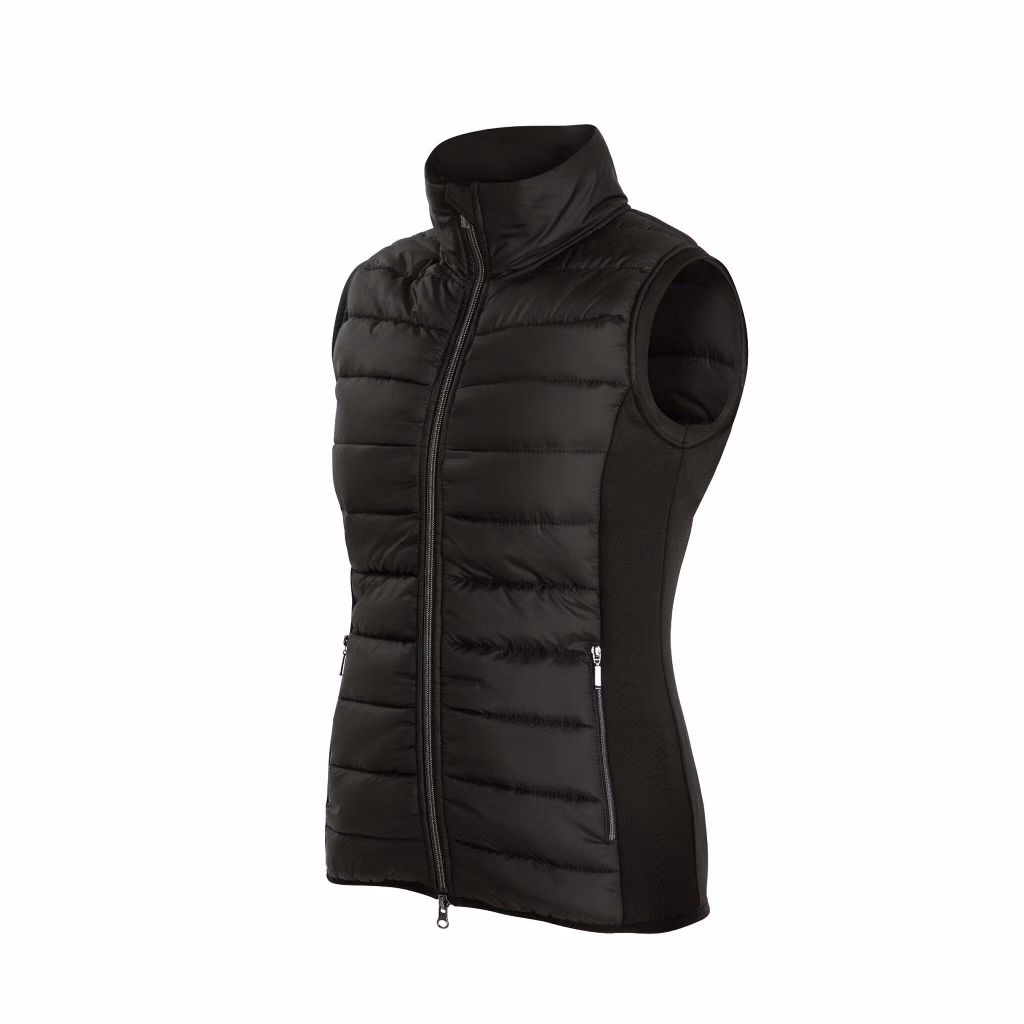 Vadderad ridväst i vindtät- och vattenavvisande polyester. Västen är vadderad fram och bak, vilket ger en värmande effekt. Stretchig softshell i sidan ger väste