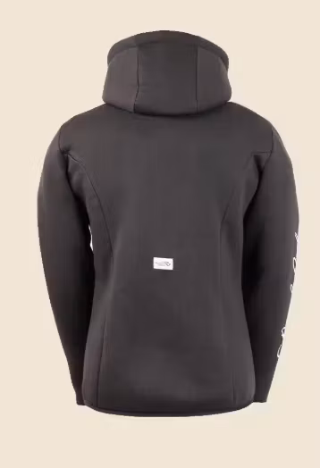 Med sweatshirtjackan GWEN med huva i svart får du en helt ny sweatshirtstil, design och snitt. Vi kombinerar ett superbekvämt, långt, sportigt snitt med chic glittrande finish; längs YKK-dragkedjan finns en subtil, lätt skimrande glitterbesparing, som också är fäst vid sidofickorna. Sömmen är arbetad med ett mjukt och elastiskt kantband och säkerställer att plagget inte åker upp. Den här jackan ska inte vara för stor, eftersom fuktutbytet av materialet fungerar bäst om du bara har en t-shirt eller linne under. EU42 storleken motsvarar US XL storleken.