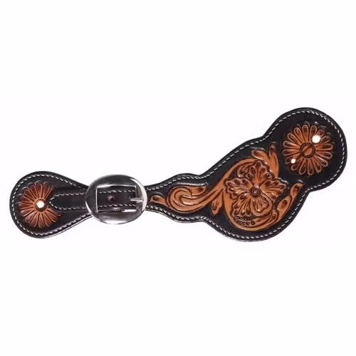 Color: Chocolate LeatherFloral cut-out spur strap.