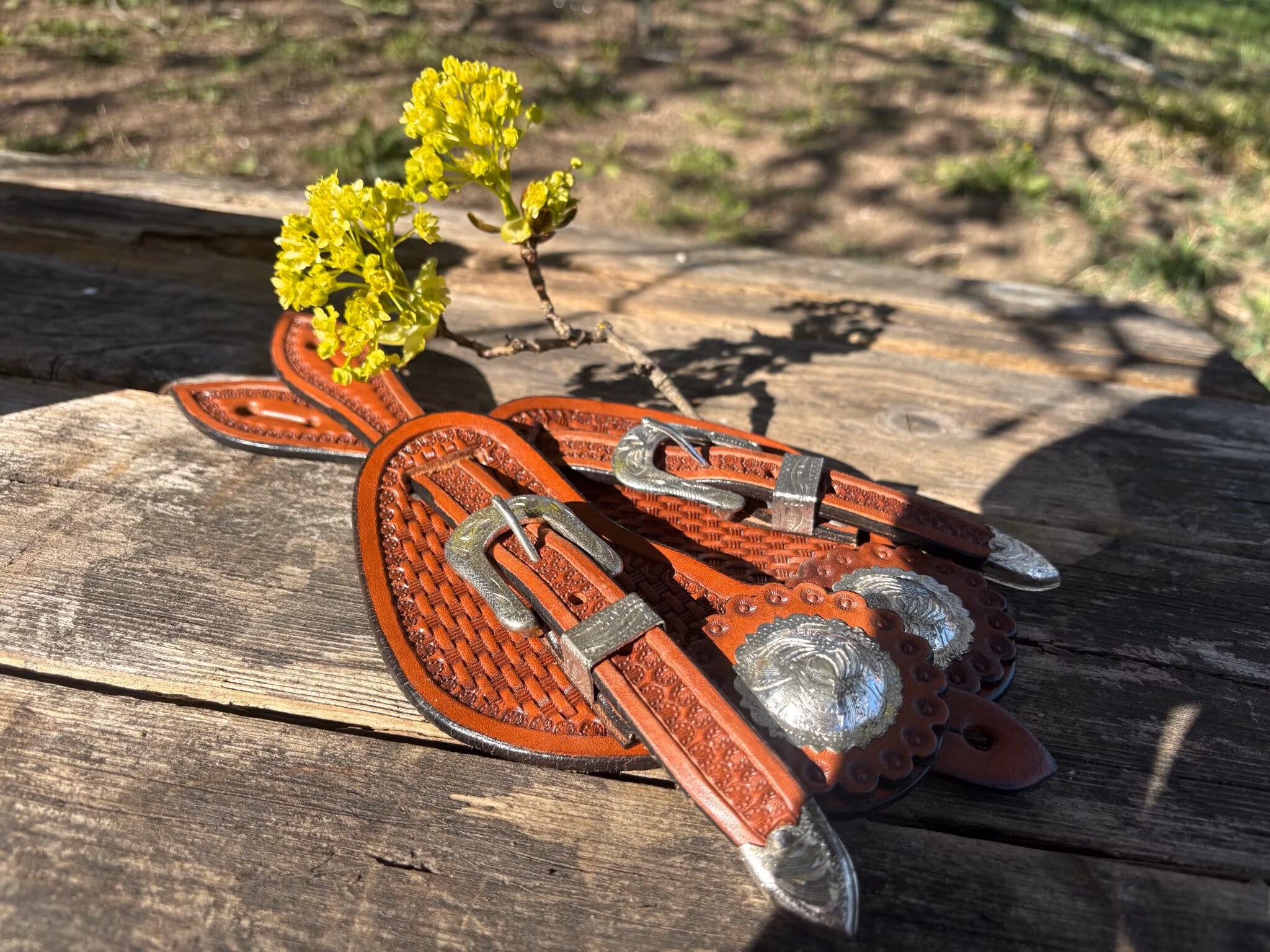 Spur Strap Tooled With Conchas Man Size