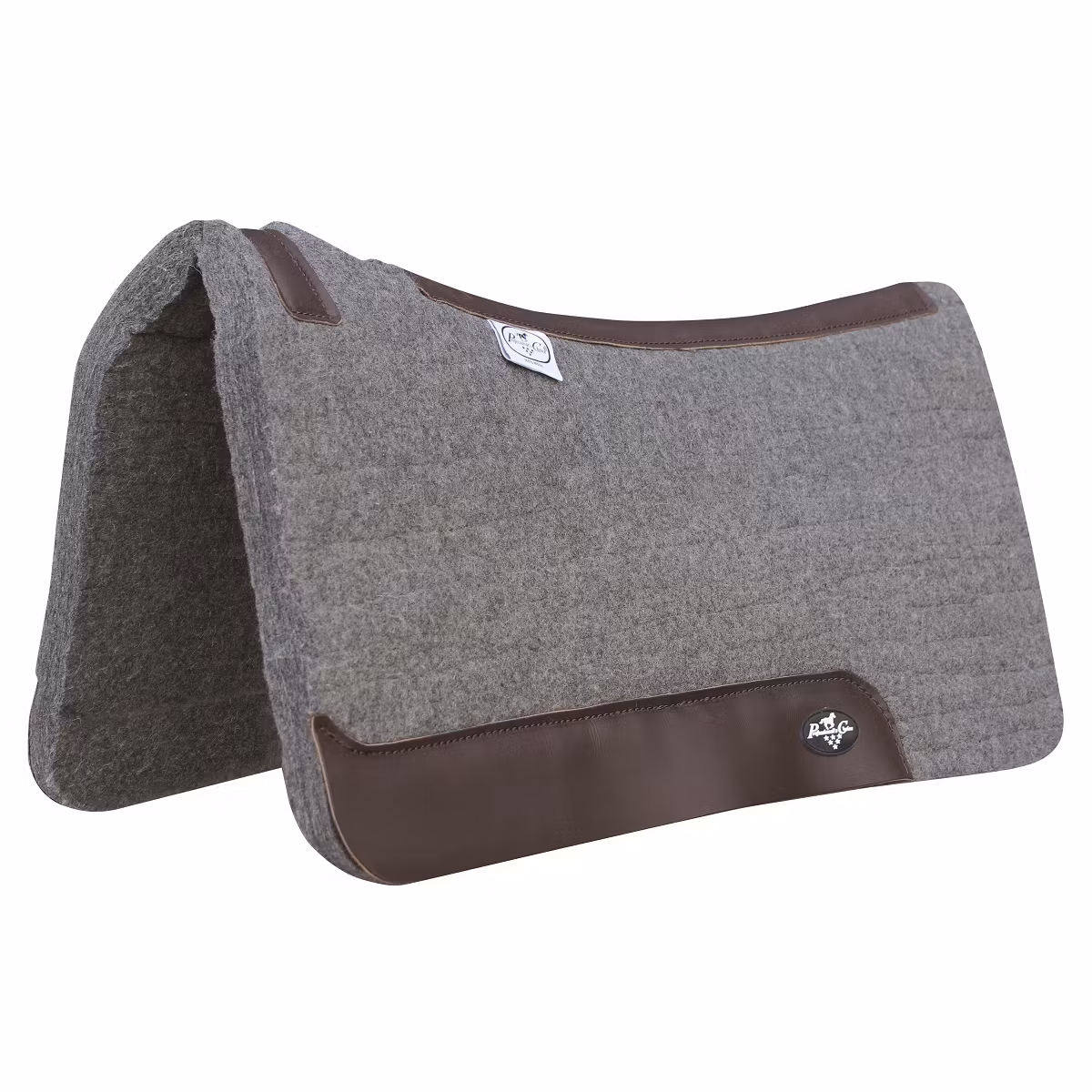 Built with highly desired 100% steam-pressed felt, this contoured pad provides an anatomically correct fit and keeps your saddle in place. A channel down the spine provides pressure relief and allows for airflow. Finished with skiving underneath the 100% genuine wear leathers, this pad allows for uniquely close contact and better communication between horse and rider. 1.25” in thickness.