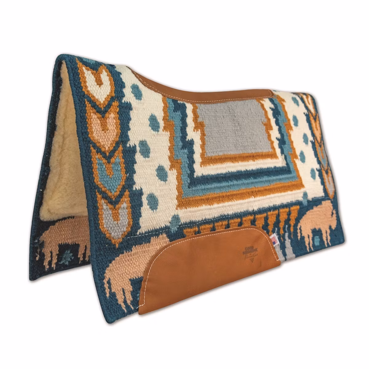 These exclusive design pads are expertly anatomically cut from handwoven New Zealand wool andreinforced with leather at the withers and over the spine. The
