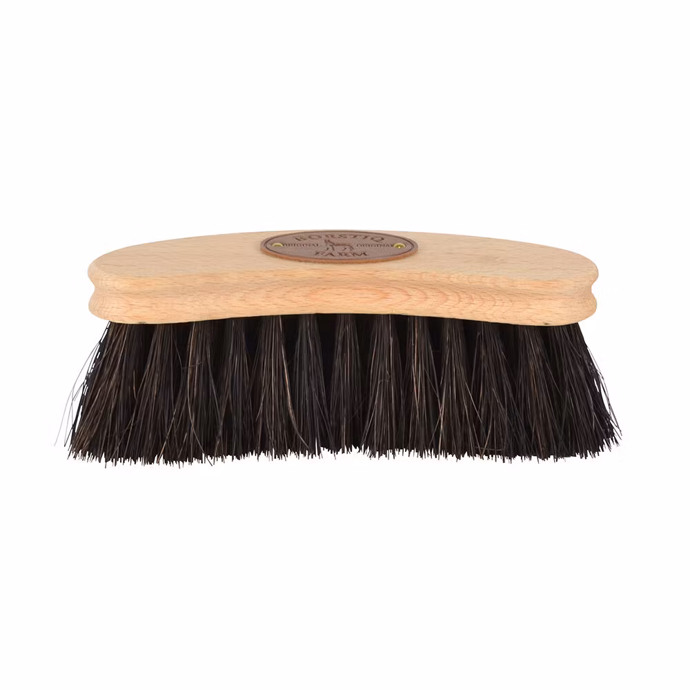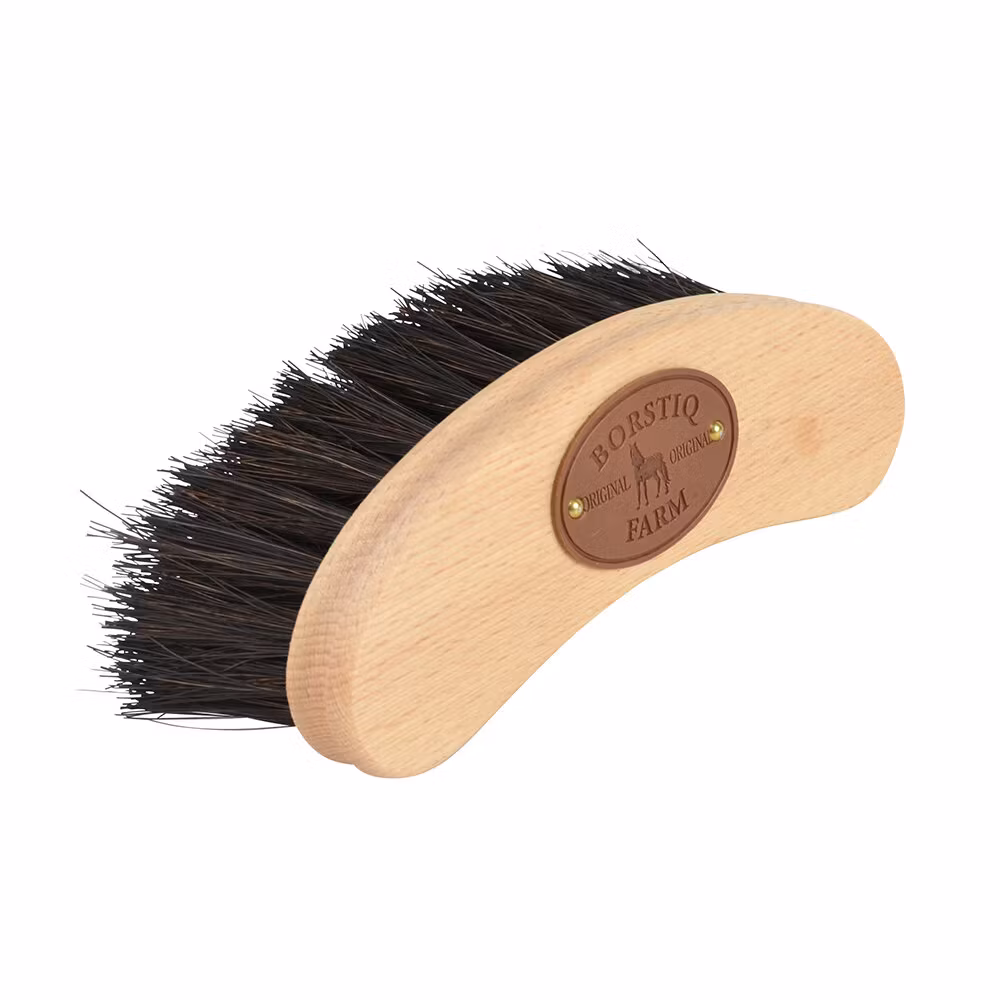 Ergonomisk bananformad rotborste som följer hästens konturer för effektiv pälsvård. Tillverkad av hållbart bokträ med borst av Arenga Fiber. Denna mediumhårda borste, med tätt sittande strån, rengör skonsamt men effektivt alla typer av päls. Särskilt effektiv mot lera och annan envis smuts. Arenga-borstens speciella egenskaper garanterar en djupgående rengöring, vilket ger en ren och välvårdad päls efter varje användning. Idealisk för daglig skötsel och lämpad till hela hästens kropp. Finns även i en midjeformad variant, något större, med identiska material och egenskaper.