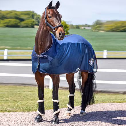 Nät/svettäcke med polyesterabsorberande fleece. Ett täckesfrontspänne och svansrem.