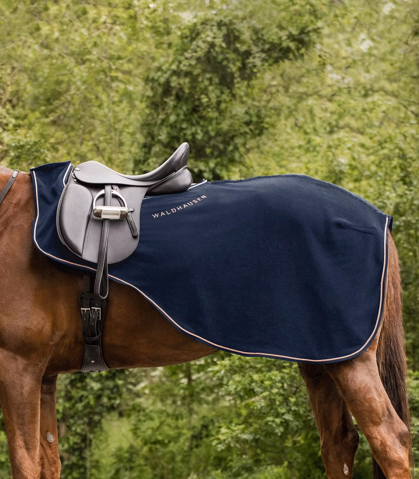 Elegant exercise sheet with quality non-pilling fleece. A rose gold cord, as well as embroidery along the saddle cut-out, ensure an elegant appearance. With a s