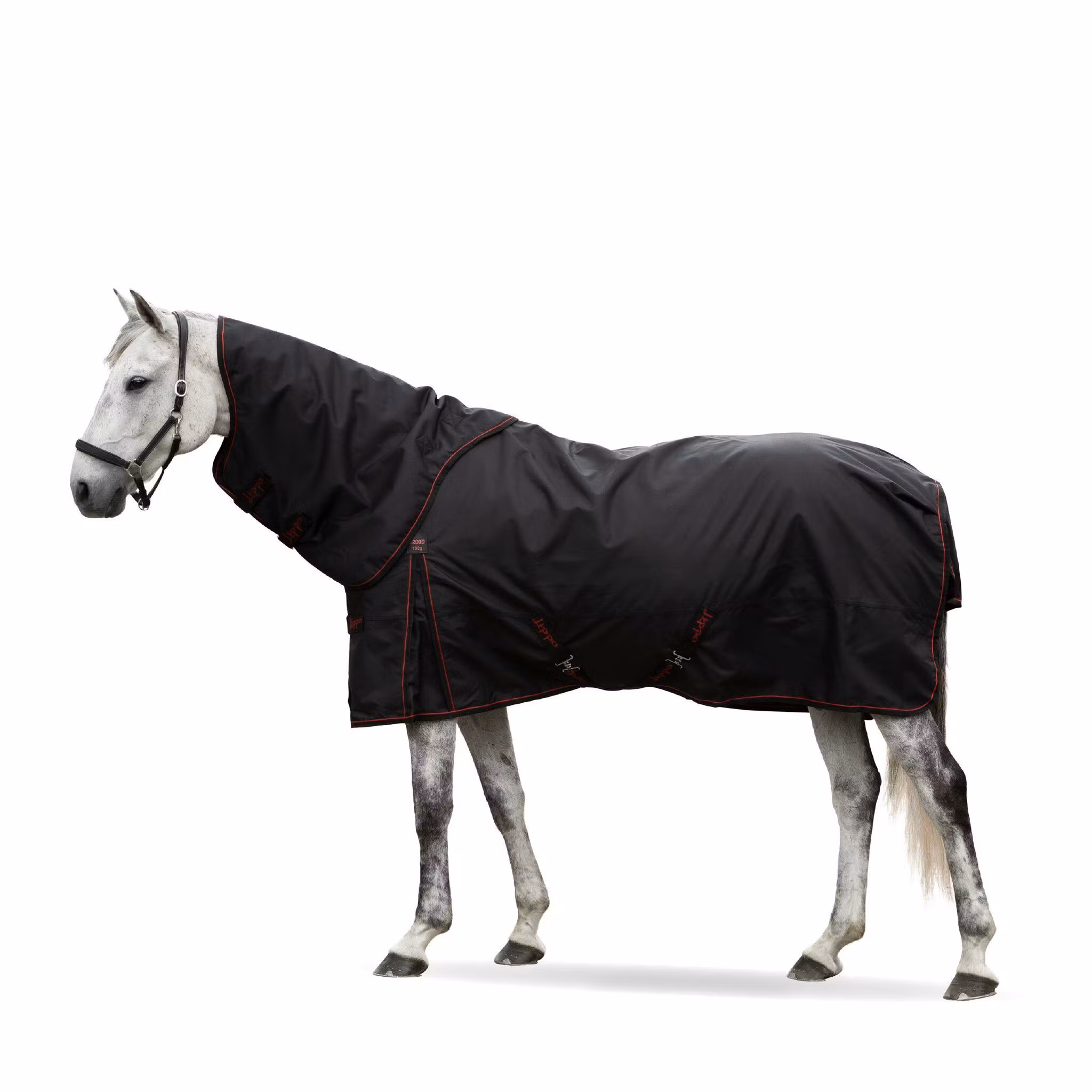 Lätt och smidigt kvalitetstäcke i extra slitstark 1200D med god passform. 3000MVT andasfunktion och 3000WP vattentäthet. Dubbla bogspännen med kardborre, kryssgjordar, bogveck, svansskydd, avtagbar svansrem och fäste för bensnören. Nylonfoder med polyesterfyllning. Levereras med avtagbart halstäcke.