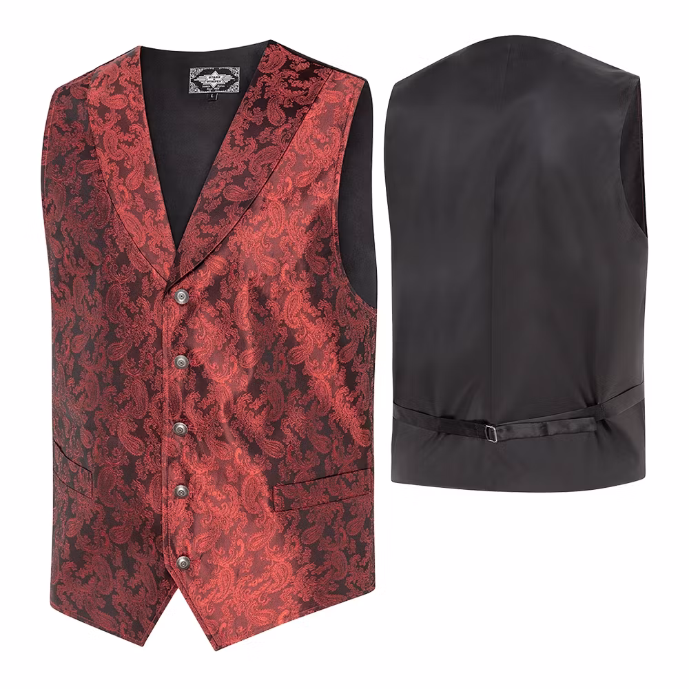 Exquisite western old-style vest with noble paisley pattern and decorative metal buttons, adjustable at the back by crossbars.- Brand: STARS & STRIPES- High