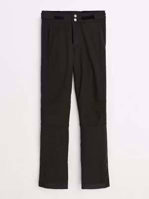 Vinterridbyxor som även kan användas som överdragsbyxor. Hög resår baktill, slits med tryckknappar i benslut. Materialet är stretchigt softshell och insidan av fleece. Resårhälla under foten. Passar i ruskigare väder eftersom de är vattenavisande och har bra andningsförmåga.