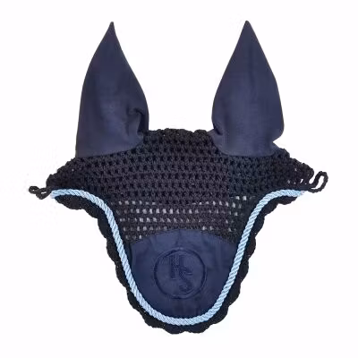Huva med tjock tvinnad passpoal i vit (rosa huva) och blå/vit (marin huva). HS-logo framtill. Elastiska öron.