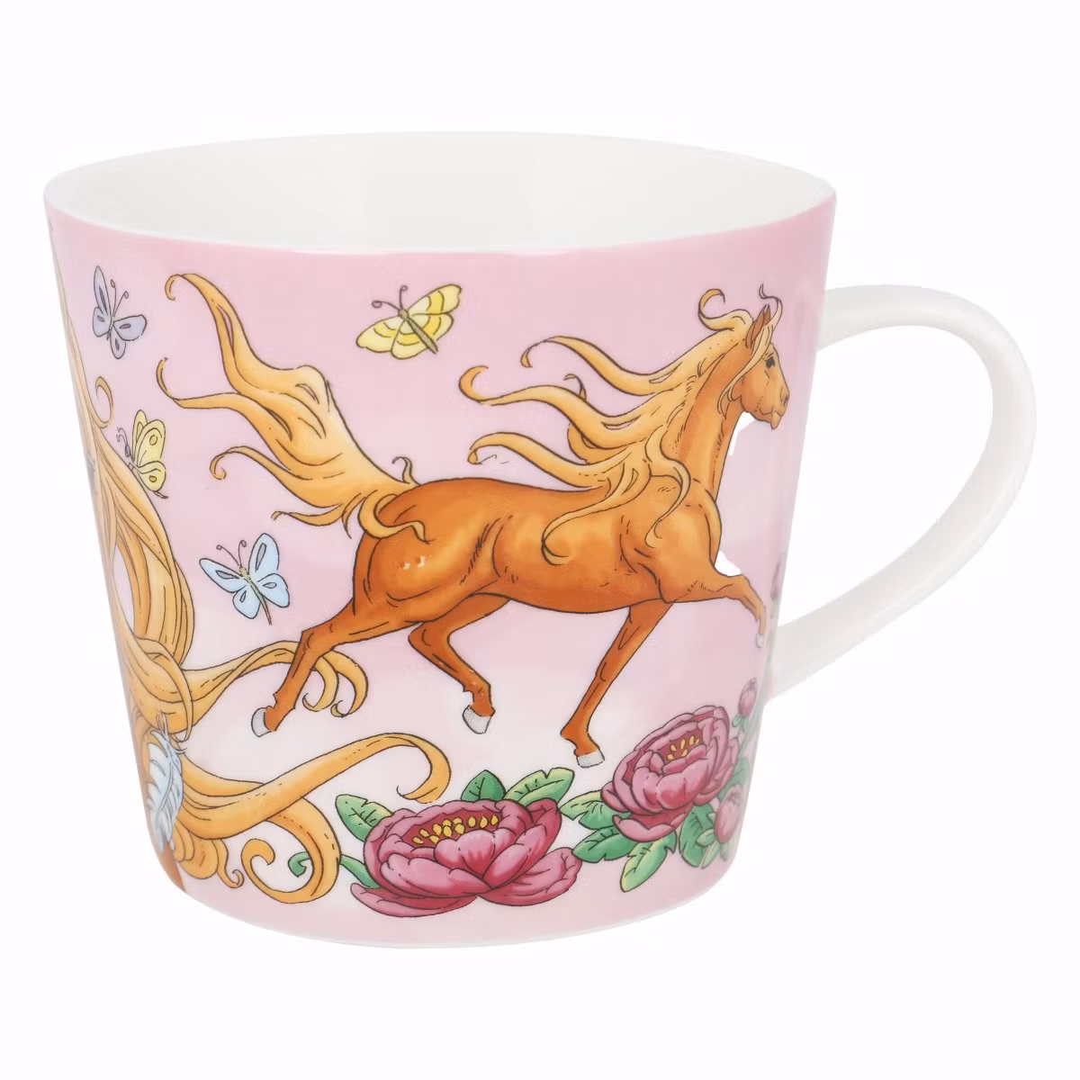 Drömsk mugg med svarta hästar mot vit bakgrund. Design av Lena Furberg. Teknisk beskrivningMaterial: KeramikVolym: 3,5 dlMått: 12,5 x 9 x 10 cmVikt: 3