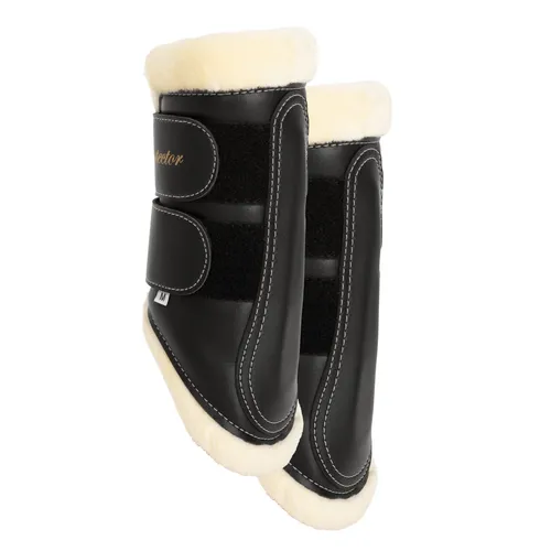 Benskydd i konstläder med insida av syntetpäls, kraftig elastisk kardborreknäppning.Passar både fram- och bakben.