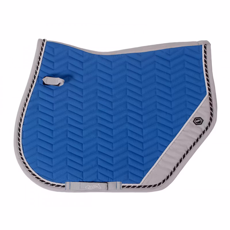 Snyggt och sportigt schabrak med en diagonal skärning baktill och färgat kantband samt två dekorativa passpoaler.. Schabraket har kardborrband för sadelgjorden samt kardborrefästen med elastik till sadelns d-ringar som försäkrar att schabraket hålls på plats. Schabraket har ett väl absorberande material mot hästen.