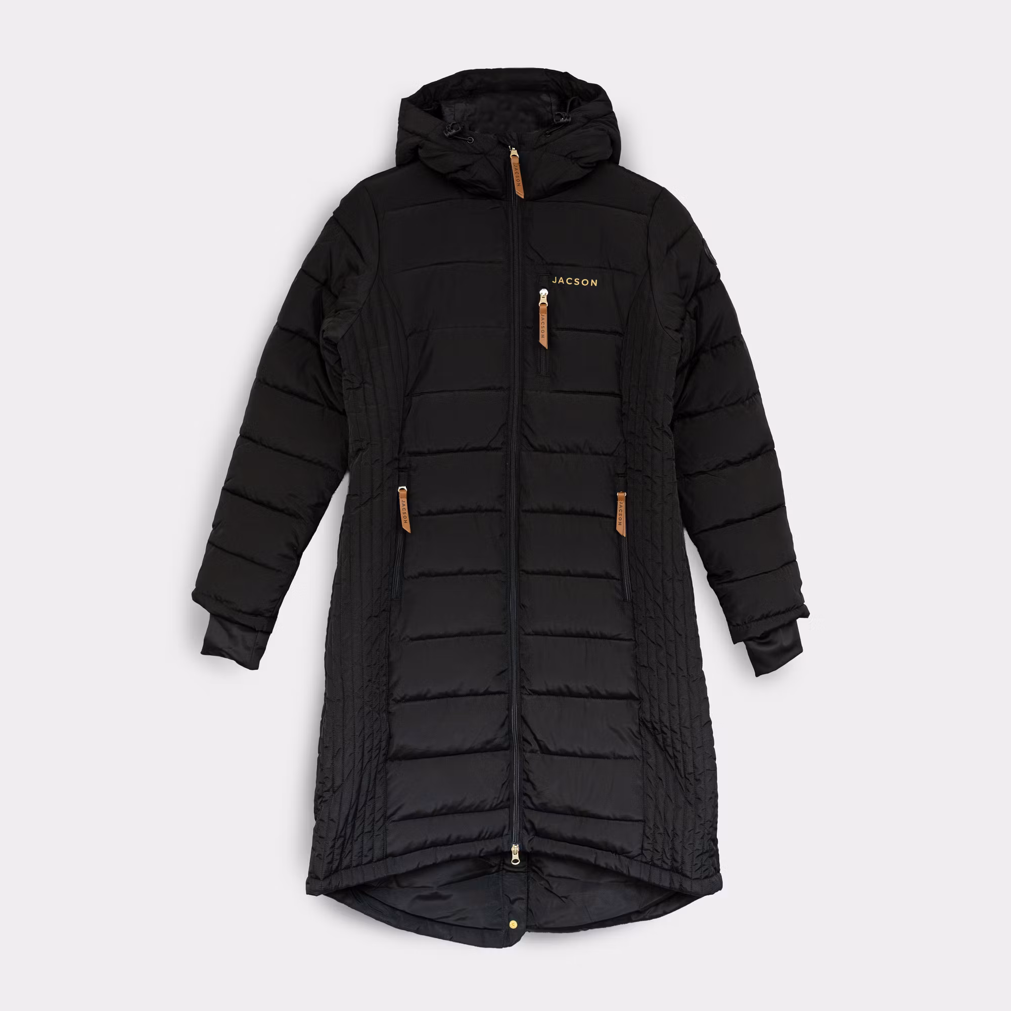 Knälång figursydd kappa med en stilren design som passar både i stallet och på stan.Kappan är utrustad med en dunliknande syntetfyllning, lycramuddar vid ärmslu