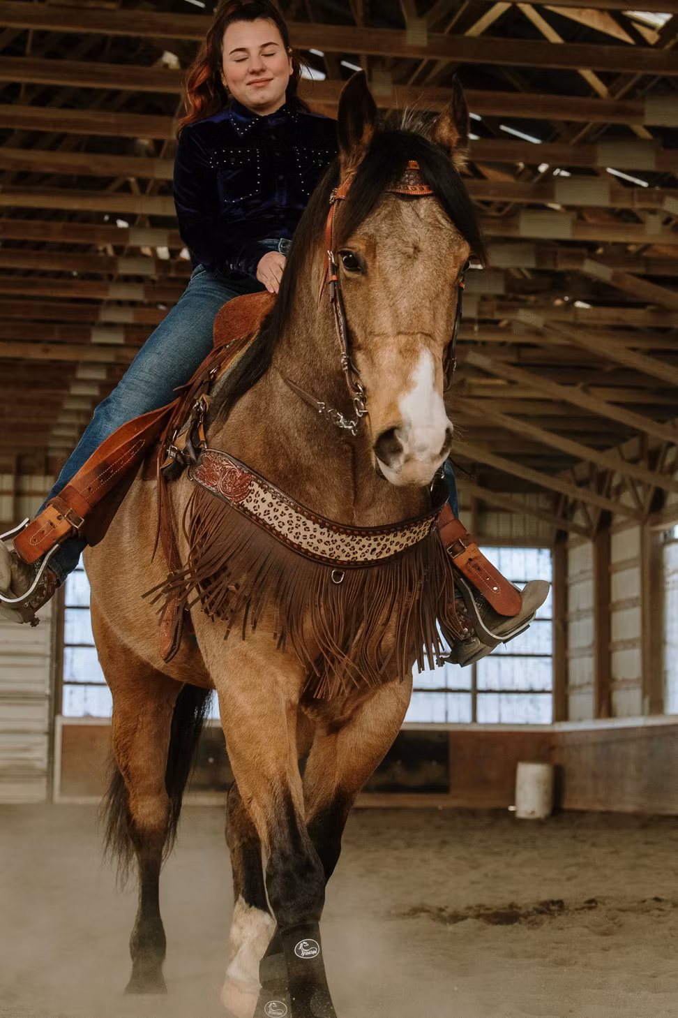 För dig som vill ha något extra!Vacker brösta med fringle, med inlagt leopardmönster.Bredd 4"Storlek Cob/FullTillverkningsland Indien